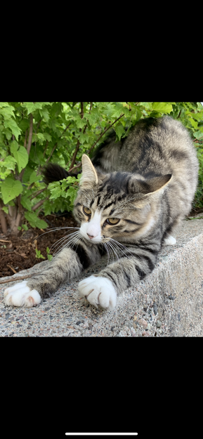 Han kom sammen med en annen katt som vi tror kan være mor/søsken men siste katt har forsvunnet.