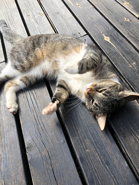 Katten kom til oss 06.08 på kvelden og mjauet svært mye ved døren, og presset seg inn om vi prøvde å åpne den. Ikke menneske-sky i det hele tatt, svært kosete og sulten, pelsen er glatt og vi ville vært svært skeptiske til at den ikke har en eier. Den ble ikke ikke sluppet inn første kveld, men katten ble stående ute å mjaue over natten, i 12 timer +, og bevegde seg til soveromsvinduene når vi la oss. Dagen derpå så vi ingen annen mulighet enn å slippe den inn, da vi ville åpne dørene. Siden har den holdt med oss uten at vi har gitt den mat. Den har virket sulten og mager, og er generelt en ganske liten katt, så siden 09.08 har vi gitt den tørrfôr.