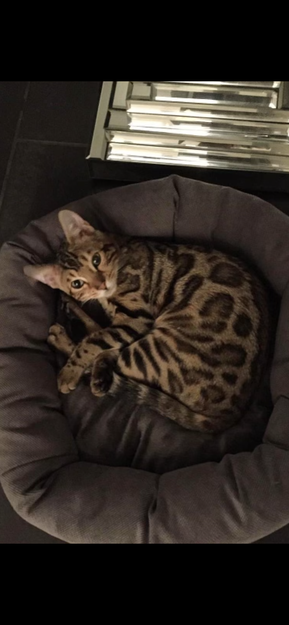 Det er en Bengal hunnkatt, ca 1 år gammel. Ikke stor. Hun er chippet.