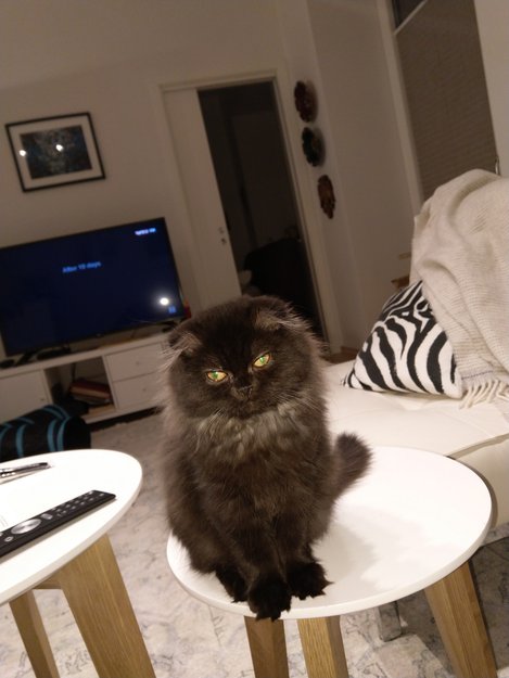 Hørte henne mjaue mellom husene. Trengte hjelp av brannvesenet f.a skreve loss tre pjallene som var festet mellom husene. Hon var ikke mellom husene. Hon hadde klart klatre på loftet og kom seg ikke ut. Folk som bodde i det huset låste ytterdøra og jeg hentet katten fra loftet.Så allt vel. Hun skal få GBS og halsbånd neste gang hun skal ut.