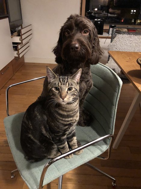 Veldig kjælen katt med lange bein og hale. Oppsøker mennesker. Har ikke halsbånd, men har tatovert «ID» i det ene øret.