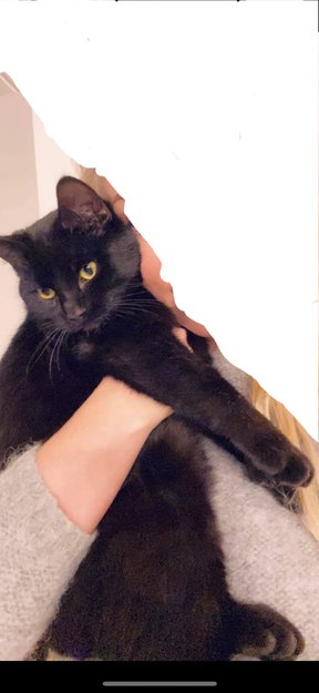 Sort skipskatt med liten hvit flekk på brystet forsvant helt ut av det blå ved hjemmet sitt, chippet og kastrert. DUSØR !!!