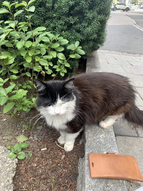 Denne katten har nå i 2 dager blitt sett i Drammensveien 167. Er litt møkkete på potene, men pelsen er ellers myk og fin. Kom med en gang jeg pusset på den.