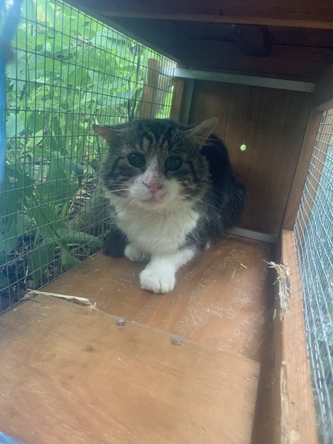 Katt funnet i hegra ved E14 i forbindelse med leting etter kattunger. Noen som eier denne eller har kjennskap til den?