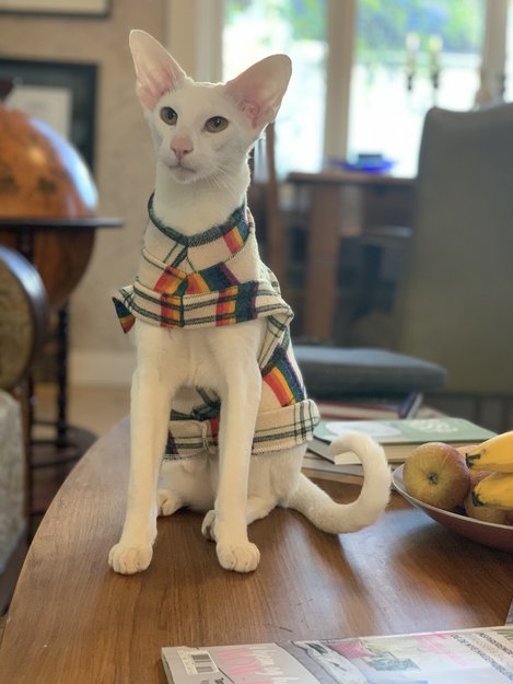 Har ofte opplevd at folk tar han med hjem til seg, vekk fra Schous plass, da de tror han er mistet. Siden orientalere mjauer mye og ser slankere ut en en vanlig huskatt.
