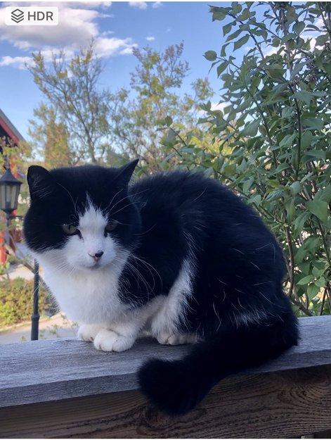 Tiril har en grå flekk i pelsen på høyre (?) flanke, etter en operasjon for 10 år siden. Hun er 15 år, og dronningen i gata her, har orntlig tilhørighet hjemme og ute. Hun går visst endel på besøk til folk, tydeligvis for kos og oppmerksomhet. Hun kommer alltid inn i bilen min når jeg kommer hjem, for å hilse velkommen tror jeg. Mulig hun kan gå inn i andres biler også! Hvis noen tar vare på henne fordi de tror hun er alene er det fint om vi får vite det. Det har skjedd før- men da har hun likevel kommet hjemom daglig.