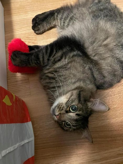 Spraglete grå/brun katt ble funnet i Nannestad