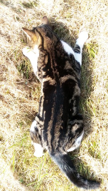 Dyrlegen er stengt så jeg kunne ikke ta den med for å sjekke chip. Katten ligger fortsatt ved vegen.
