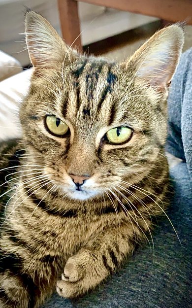 Verdens fineste❤️ Tillitsfull og kjælen. Tigerstripet i svar og brun (Ingen hvite felt) hun er gyllen på buken.