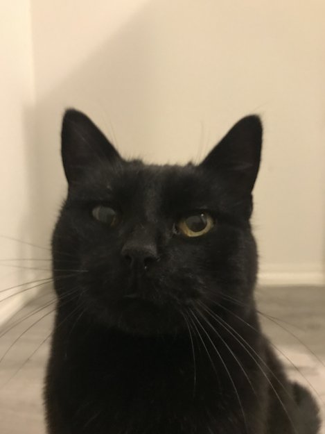 Askepott er 13 år gammel, svart og er blind på høyre øyet. Vi tror hun er syk og har avtale hos dyrlegen, men hun har blitt borte.