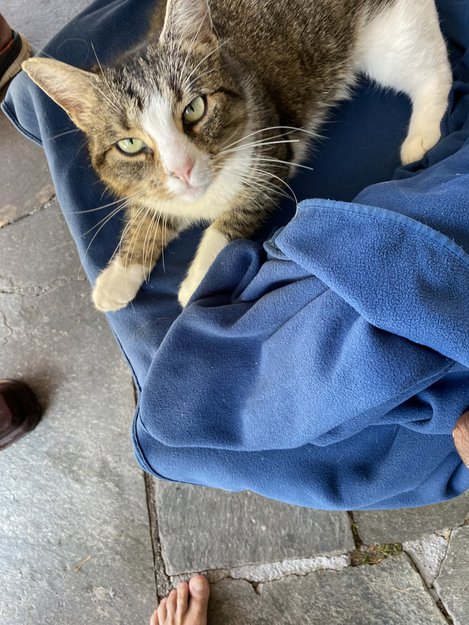 Den kom hit søndag kveld kl 22:00, sulten og trett. Veldig kosete.