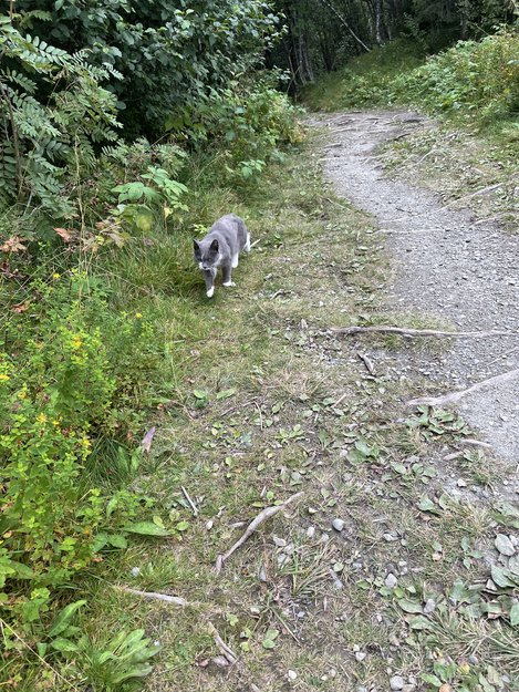 Liten katt (så ut om en eldre kattunge) observert i Estenstadmarka i Trondheim. Like i nærheten av Estenstadhytta, øst. Lite/ ingen hus i nærheten. Virket litt skvetten, ønsket ikke å kose med oss.
