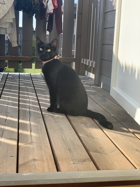 Id tatovering i høyre høre, i’en syns ikke så godt lenger. Id shipa. Hunn katt. Mistet ene tanna oppe. Bruker ikke halsbånd.