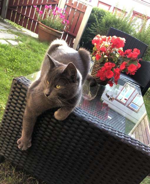 Katten har slått seg til i bakgården vår på Møllenberg, og vært her siden 21.08. Ser ut til at hun holder seg her hele døgnet, og vandrer lite rundt. Ikke chippet.