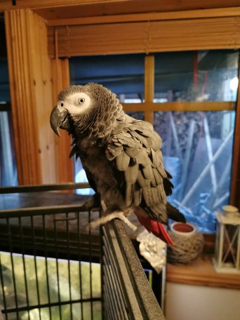 Ein grå jako ser ut som ein grå jako. Vår var veldig pratsom og kunne navnene på alle i huset roper på Gompen (hunden), hermer etter stemmene til meg og kona, mange lyder og mykje anna