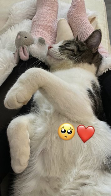 Har en liten kutt det ene øret og har bare en svart flekk i det ene poten