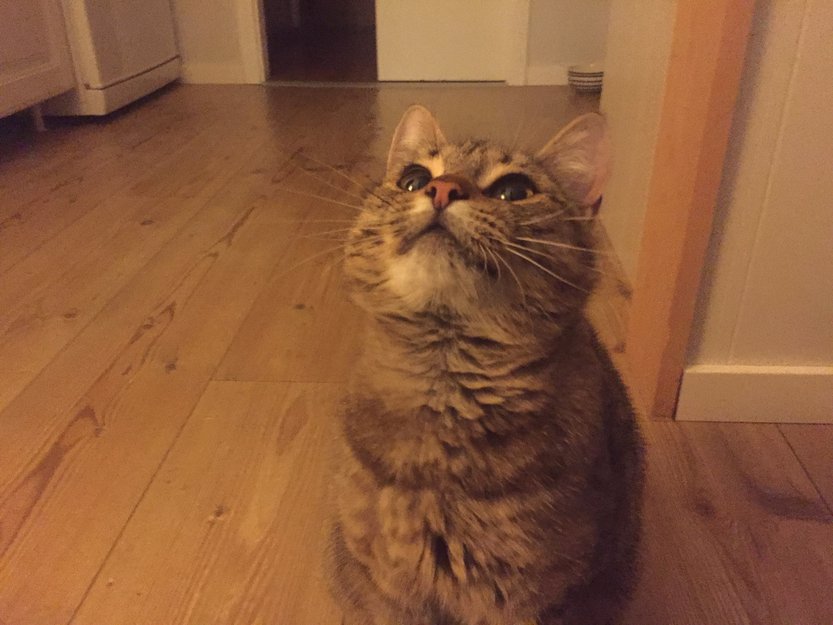 Katten har seks tær på begge frembena. Hun er sannsynligvis ung, ca 1 år gammel. Hun er rolig og klør ikke. Hun er potteopplært.