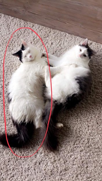 Hvit med lang sort hale. Sort på ører og på ryggen.