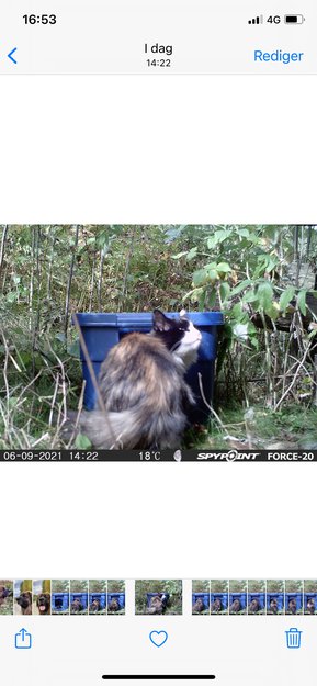 Kattemamma og to unger fanget av Sommerkatten.no, mangler fortsatt to unger. Ene oransje andre svart og hvit, noen beskriver denne som flerfarget. Begge ca. 10 uker, veldig skye. En observert 04.09 på tursti ved Veslemona (Østreng). Kattungene med mamm vert observert i hele området mellom ambulansestasjon ved Brennemoen og Veslemona (Østreng).