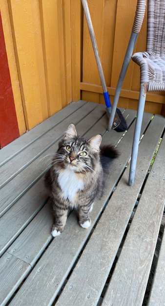 Ikke kommet hjem på et par mnd og er meget savnet. Vår andre katt kom hjem og hadde lagt på seg,så er redd Fluffyball også får/finner mat et sted og derfor ikke kommer hjem. De er veldig heimkjære begge to.
