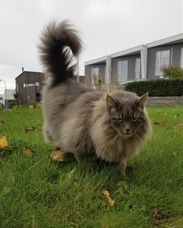 Veldig kraftig katt, ca 7kg. Mye pels - «fluffy»