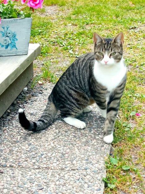 Katten er tillitsfull og kjælen. Håper på å finne eier, før det blir kaldt ute.
