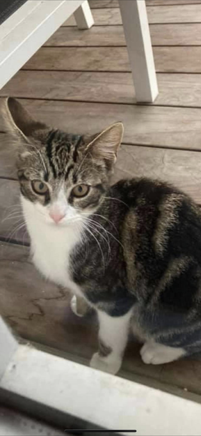 Spirit er en grå katt på ca 5 måneder med hvit pels under magen og hvite labber. Og har striper i pelsen sin,