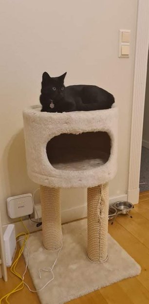 Han har halsbånd med navn og min telefon.