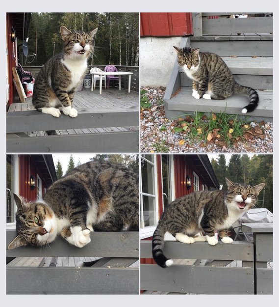 En katt har plutslig dukket opp på nabohuset. Vi har lagt ut på facebook og prøvd å lete etter eier.