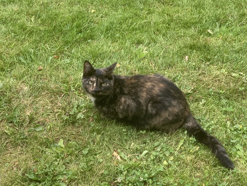 Liten hunnkatt, med brun-/gul spraglete pels. Tillitsfull og nysgjerrig, og glad i barn.