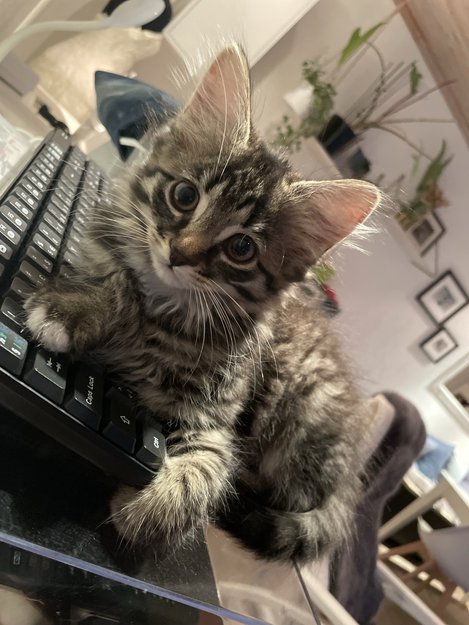 Vi slapp katten fordi vi skulle spise sjokoladekake. Etterpå gikk jeg ned til pappconteiner og den fulgte etter. Den er liten og har ikke retningssans.