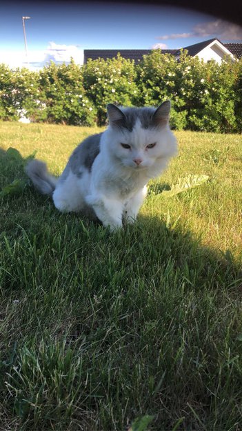 han har forsvunnet fra hjemme nå. han vart bort i 2 uker får ca 8 uker siden å da kom han hjem god og rund, tipper han har funnet seg et nytt hjem.