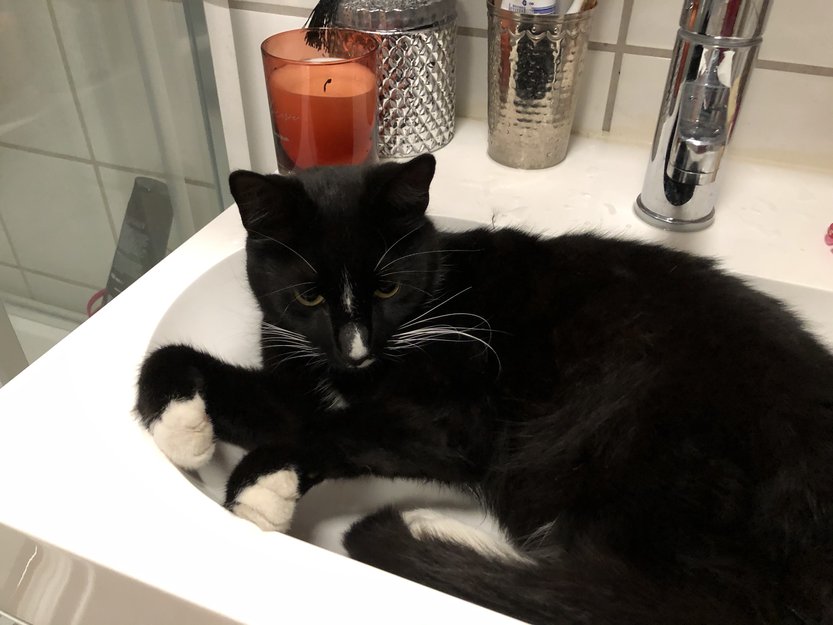 En huskatt med egen luke, går ut og inn som han vil. Har vært borte i flere uker av gangen før, men alltid kommet tilbake.