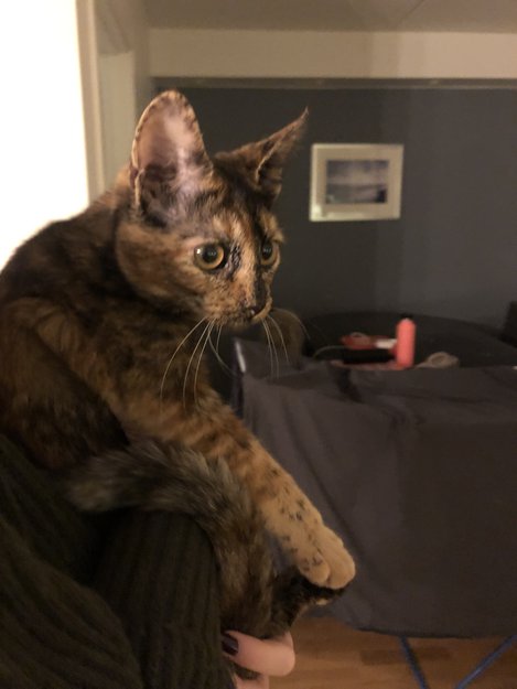 En kattunge som går rundt i området og mjauer høylydt. Virker som den ikke kjenner seg igjen!