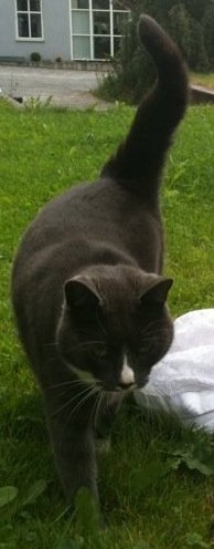 Da vi kom hjem i går kveld satt Rambo utenfor døra sammen med søstern sin, nøyaktig på dagen 3 måneder etter at han forsvant. Ganske tynn, men ser ikke ut til å ha tatt noen skade av å være på vift så lenge. Regner med at de har funnet hverandre og at han har blitt med henne hjem :-)