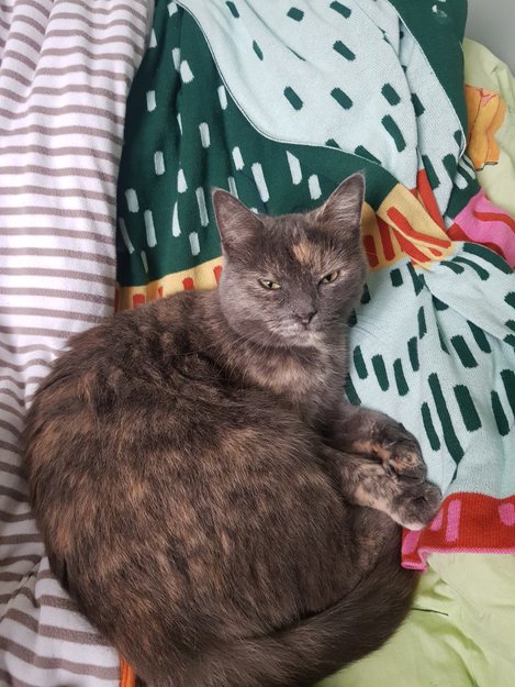 Vi har hun ikke så lenge. Hun var ut noen ganger før allerede for flere dager og kommer tilbake men nå har det gått 5 dager allerede, så vi begynne å lure. Veldig kosete katt med stor tillitt til mennesker og kommer når man roper etter hun og bøye seg ned. Fredag morgen maste hun for å komme seg ut som vanlig men ikke kom tilbake siden det. Mannen min sa at han tror han så hun i hagen på Lørdags kveld men det kan også har vært et nabo katt. Løpte bort i lyse av hodelykten. Søkt hun i nabolaget men ingenting.
