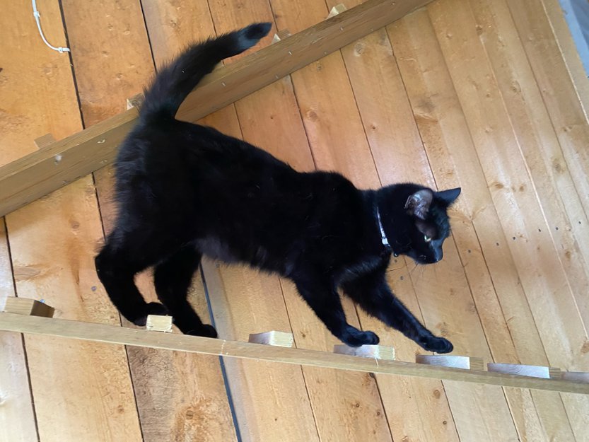 Lakris har en smal helsvart kropp med noen få hvite hår på brystet og kroppen.