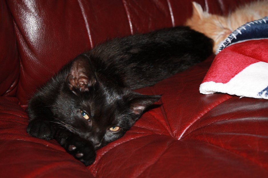 slank, liten og helt svart , kan kjennes igjen med at den ene pupilen ikke trekker seg helt sammen i lyset.(høyre øye)