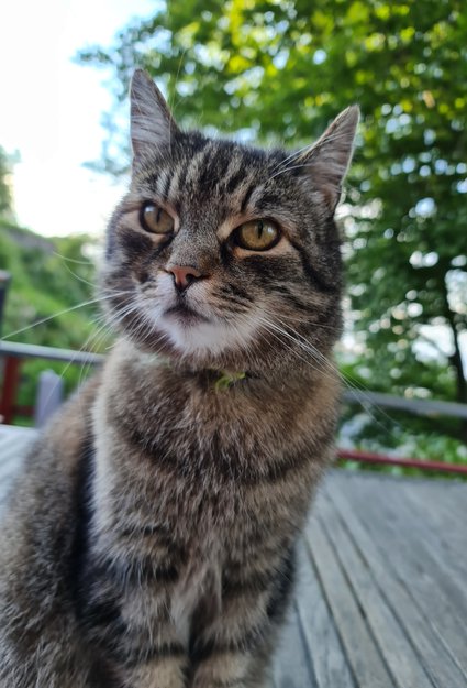 11 år gammel hunnkatt. Veldig pratsom. Halen står oftest rett til værs, vifter med den som en hund. Hvite detaljer i den grå (litt brunlige) pelsen.