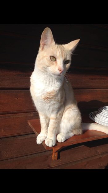 Korthåret katt, veldig lys gul farge.