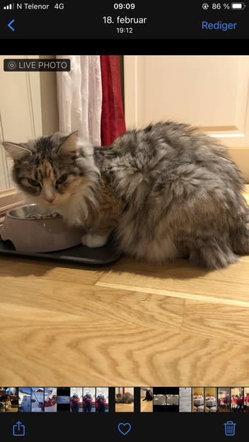 Pusen ble sluppet ut som vanlig. Går aldri ut av tunet/gården vår. Holder seg alltid i nærheten.