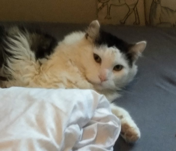 Hvit, grå, brun. hannkatt var savnet i Skaun