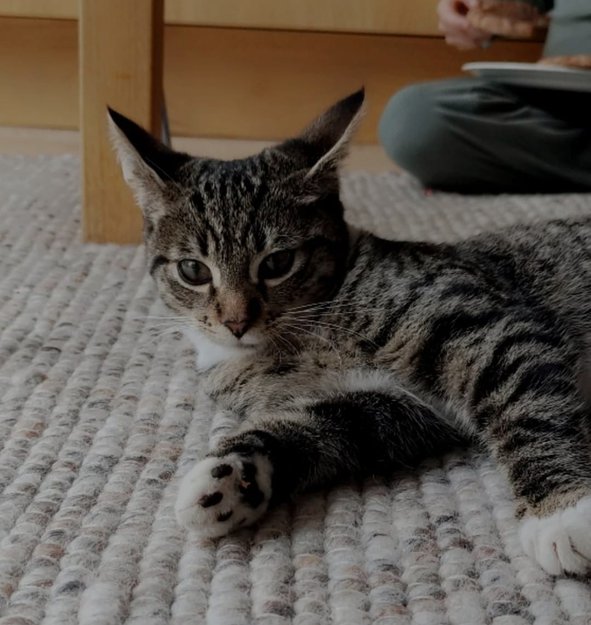 Denne skjønne kattungen dukket plutselig opp 25. oktober. Naboer sier de har sett den her siden 22.oktober. Den dukket opp samtidig med et kattebur som plutselig stod på en øde tomt her i gaten vår. Katten er kontaktsøkende og har mjauet utenfor huset vårt siden søndag formiddag. Hele familien er allergiske og vi kan ingenting om katter. Vi kjøpte kattemat til den og den har sovet blant ulltepper i garasjen. Dyreklinikken sier den ikke har noen id chip og at den er altfor liten til å være ute alene. Fikk så dårlig samvittighet at nå har vi stappet i oss allergitabletter og sluppet den inn i huset vårt. Den er i følge dem for en hunnkatt. Den er veldig kosete, trygg og kontaktsøkende. Vi har vært rundt i nabolaget og spurt om noen savner den uten hell, så nå prøver vi her også . Kattungen har fått et midlertidig hjem nå, men hun som har tatt henne inn sier at den har et enormt sugebehov og da den i følge dyreklinikken kun er ca. to måneder mener hun kattungen vil ha det best om den får bo et sted hvor det er en kattemor med melk aller helst sin egen kattemor. Så hvis du savner kattungen din eller vet om noen som har en kattemor med melk så ta kontakt.