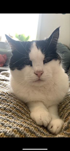Han hoppet ut vinduet i morges og har ikke kommet tilbake. Innekatt som aldri har vært løst ute. Han er veldig skvetten og gjemmer seg når han blir redd.