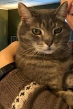 Pus er en middels stor, slank hannkatt, 9 år gammel. Grå med litt hvite tegninger i ansiktet. Veldig kosete med de han kjenner, men sky mot fremmede. Mjauer ikke.