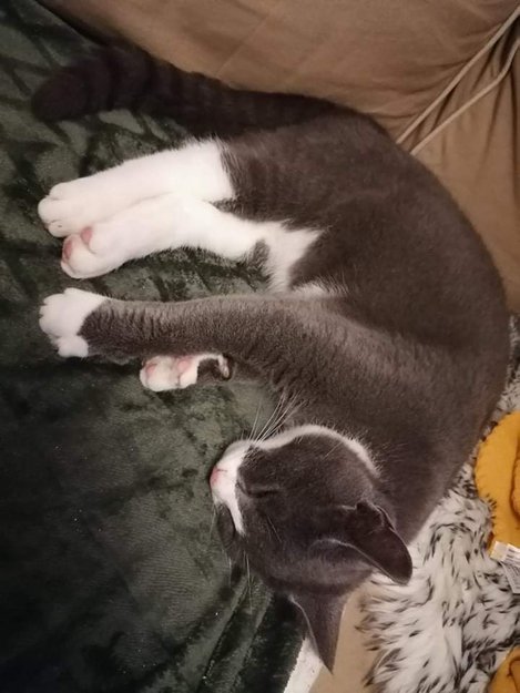 Grå + hvit hannkatt ble funnet i Sandefjord