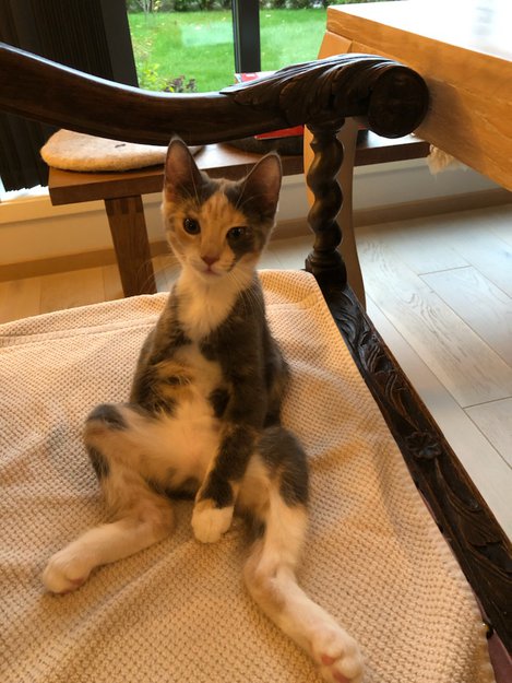 Prosecco er en manx-katt og er født uten hale. Av den grunn har hun også ekstra lange bakbein. Slank. Hun er trefarga, med ei karakteristisk "skøytelue" i panna. Forsiktig og litt reservert som type.