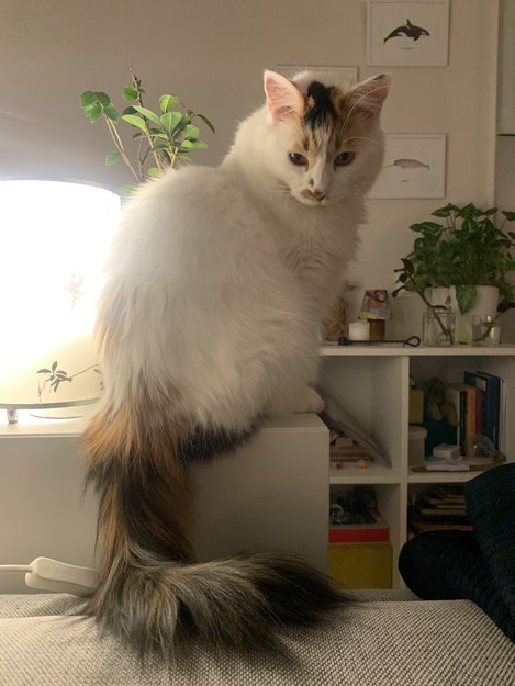 Katten rømte fra en leilighet på Majorstuen, hun er en innekatt så mest sannsynlig redd. Hun hopper ikke så bør ev befinne seg på bakkeplan.