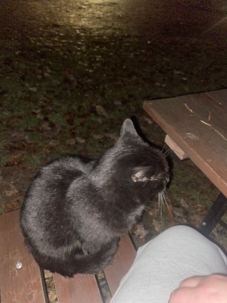 Svart katt, liten usikker på kjønn eller om den er sterilisert eller ikke, ble veldig sosial etter litt mat og begtryggende kos, har sett den i 5 dager i strekk nå, den har mjauet så mye at den har blitt hes i mjauingen. Den har hel svart pels som er rimelig tett, røyter en del og er rimelig liten. Håper så virkelig at den noen eiere i nærheten som er glad i den. Ta beskjed på 48222683 om du har noe informasjon.