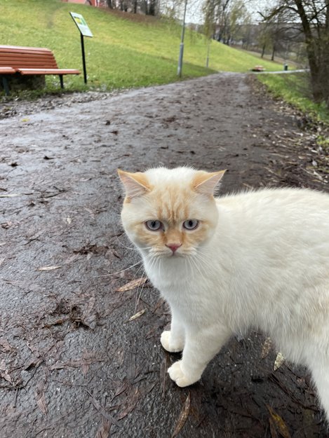 found this cat in Myraløkka park by the river, he was looking at the water and ducks. we called him and he came, he was very friendly! we don’t know if he fled from his house or if he’s just having a casual walk! he went back next to the river to sit down and we left